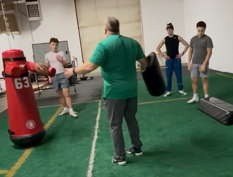 Position specific training for Linebackers & Defensive Ends and speed training for all athletes, with an emphasis on character development